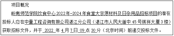 项目名称:岭南师范学院饮食中心2022年-2024年食堂大宗原材料及日杂用品招标项目